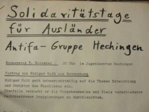 In den 1970er und 1980er Jahren gab es mindestens in Albstadt und Hechingen Antifa-Gruppen.