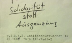 Wir wissen nicht viel über diese Gruppen, finden es aber spannend das es auch im ländlichen Zollernalbkreis früher unterschiedliche Antifa-Gruppen gab, die versucht haben an ihrem Ort gegen rechts aktiv zu sein.